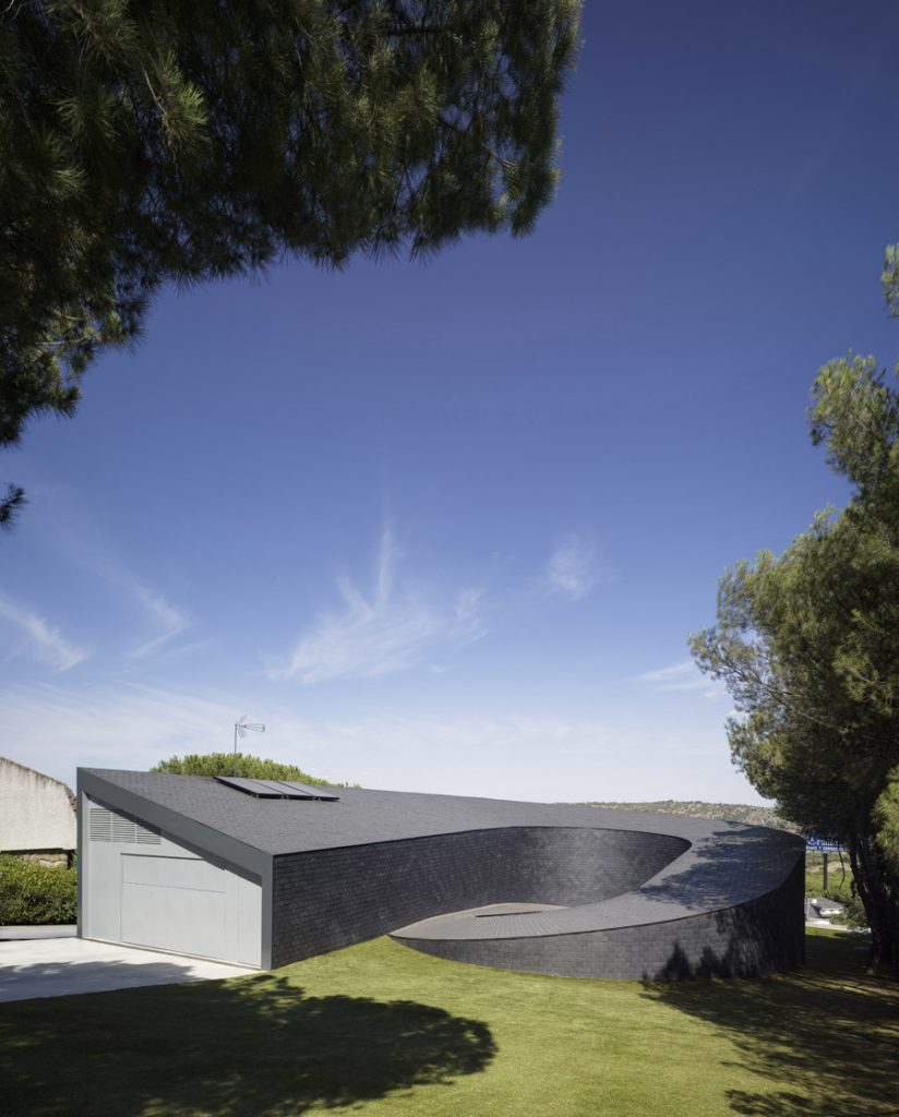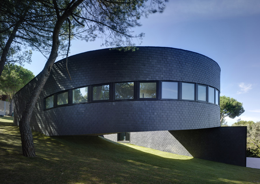 “Building a home with a public program of social relations, associated with the private lives of a large family on a sloping plot with spectacular views of the mountains of Madrid. A unique opportunity for us is really a problem raised a thousand times. Has no solution, there are many, are even listed in books of hillside houses.