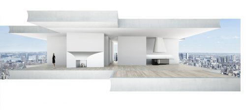 The last 10 levels of the top that give the appearance that they were simply stacked correspond to the 10 Penthouses ranging from 1,112 to 1,944 square meters each. The upper part of the building is the most expressive part of the project. In these Penthouses are the largest overhangs. Each of the top 10 floors, known as “Villas del Cielo”, is occupied by a single apartment, with views on all sides and without knowing who are below or above them.