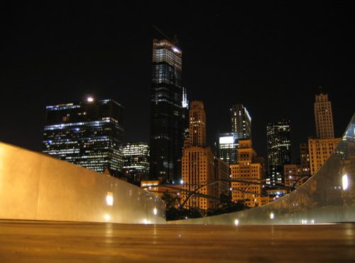 The BP Millennium Park Bridge is located on Columbus Drive, at 201 E. Randolph St. between Michigan Avenue and Columbus Avenue. It connects Millennium Park with Daley Bicentennial Plaza, both are part of a larger space Grant Park, in the heart of downtown Chicago, Illinois, United States. The bridge castles, on the east side of Millennium Park, the Jay Pritzker Pavilion on Av. Columbus. The park has other interesting elements accompanying Gehry ripples like Cloud Gate sculpture by Anish Kapoor and Jaume Plensa’s Crown source.