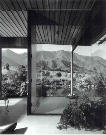 In this second option where the deck appears to be supported, R. Neutra uses the system –Outrigger-that is to bring media to the inside corner by moving them to achieve the cleaning of them. In these cases the structure is in line for stretching and pulling up the exterior and the pond, so the structure also becomes part of the landscape.