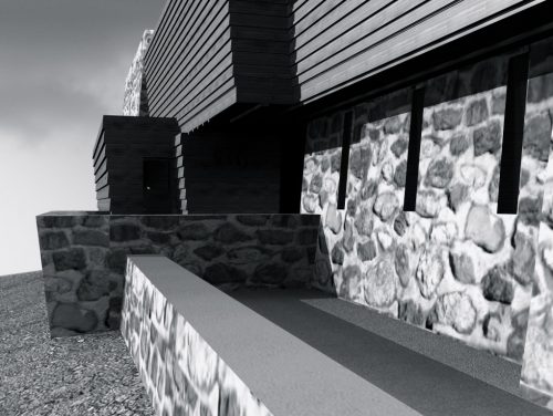 They emphasize in the house two fundamental materials: stone and wood, that are used as much outside as inside the house.