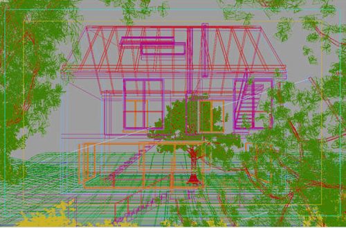 - It has a large inclined roof, however the eaves and gutters which correspond to this roof disappear, and the rainwater slides down the concrete arriving at the pond on the supporting platform located on one side of the house.
