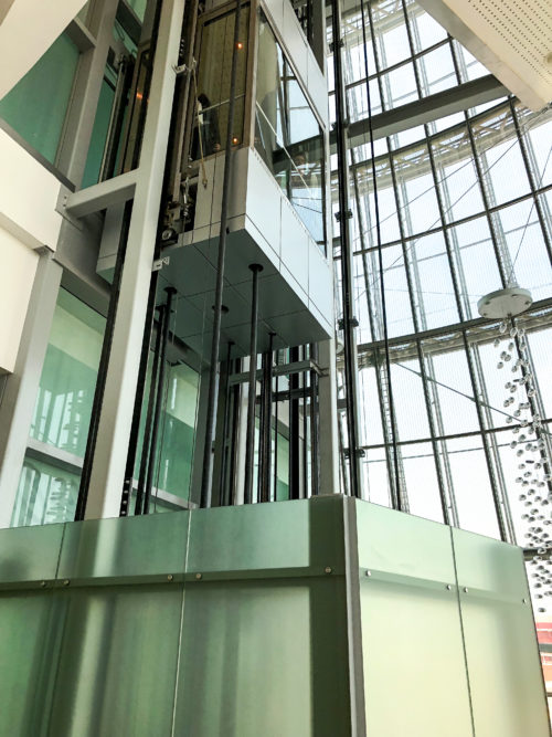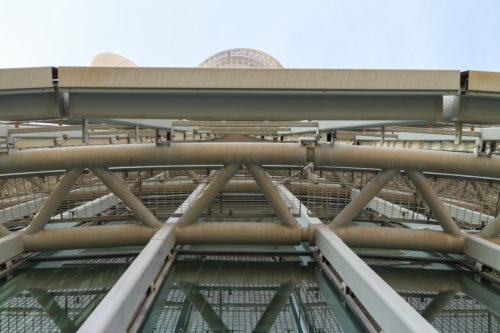 The architect, Hadi Simaan, has argued that the steel structures that surround the nucleus also act as visual forces, creating an energy that radiates from the center in a rising spiral of light.