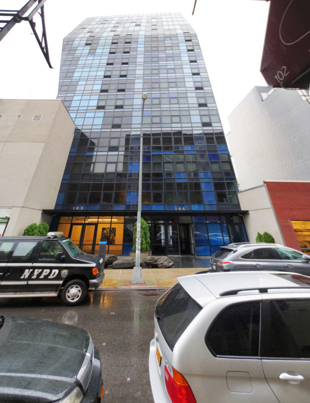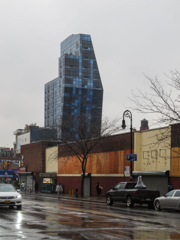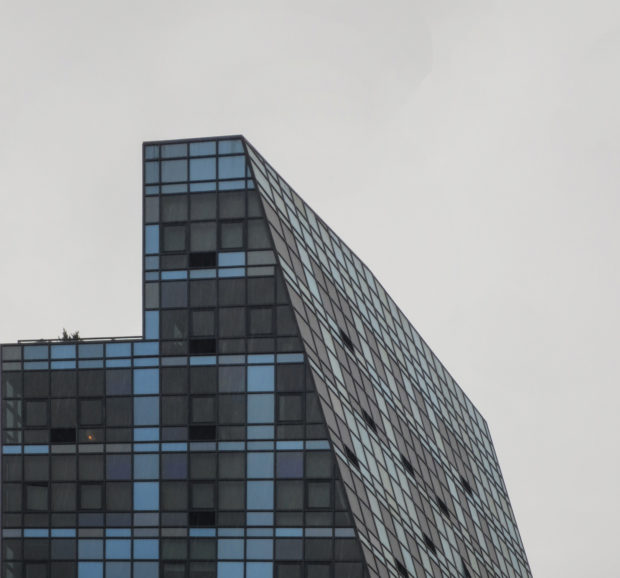 Its construction was made possible largely to the purchase by the promoters of the “rights of air or sky” of several neighboring buildings. Such as cantilever over the commercial space on the south side of the building, or an angle from the bottom up, expanding the size of the units located in the upper floors, with stunning views of Lower Manhattan, River Aryan. This strategy also maximizes the amount of allowable residential square meters. Pixelated facades reflect both the internal arrangement of the spaces as the multifaceted character of the neighborhood below.