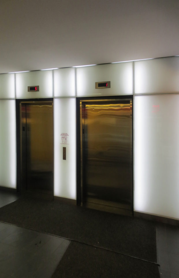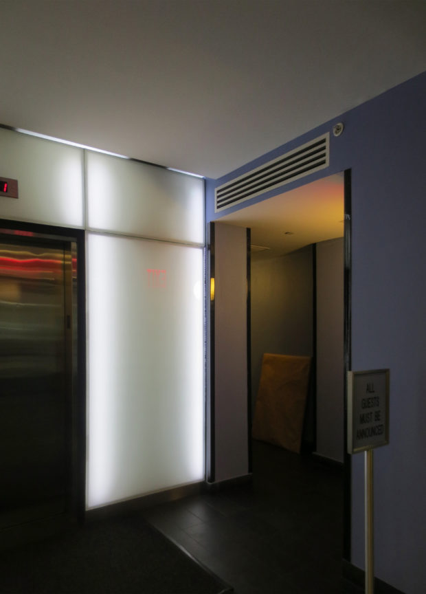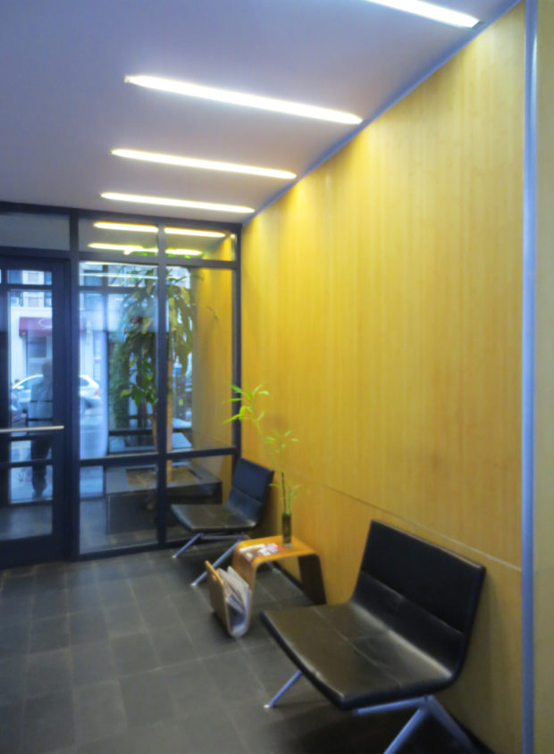 In public areas bamboo panels of the walls, stone floors and white glass panels they backlit placed.