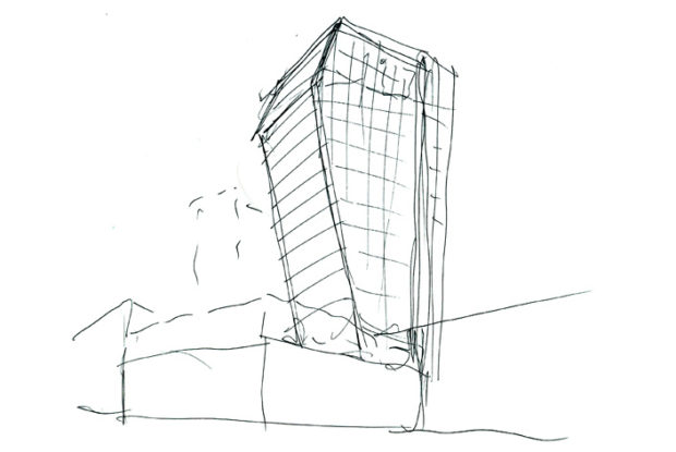 The floor plates of the fourth floor fly to 11′-0 “while on the twelfth floor do 21′-0”. These measures are cantilevered plates according to the angular shape.