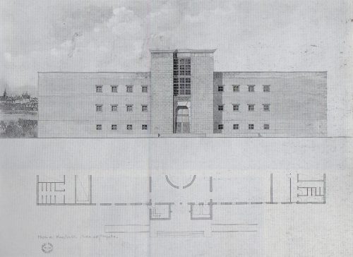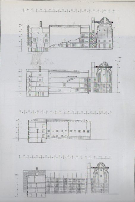 The planimetry used by Rossi is simple, three longitudinal cross bodies joined by another, (E), in the center of which is the main entrance. The three parts of the building can be defined as three vertical lines whose structure results a symmetric and smooth building which confirm the predilection of Aldo Rossi for the simplicity of the forms derived from engineering and building static laws.