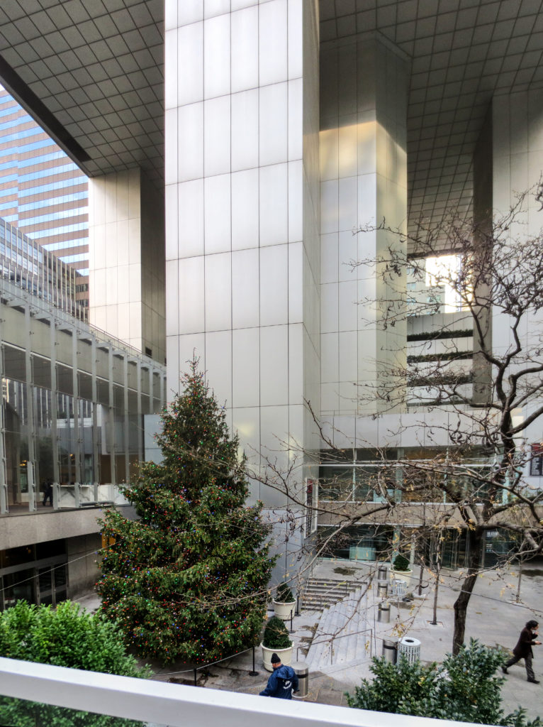 The building has seven floors of an atrium at its base on which you can find three floors of shops and restaurants. The atrium also has a sunken plaza with respect to street level.