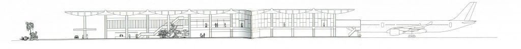 A tree-like reinforced concrete roof covers the lobby and the waiting area situated on a mezzanine. This allows the lobby to have a double-height, confirming Andreu’s continual emphasis on space and airlines in his designs.