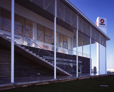 Dercos is a set of buildings to a complex of automotive services. The project was won in a contest, offering a volumetrically architecture pure and simple lines, capable of responding effectively to the delivery processes, preparation and distribution of automobile spare parts. Bioclimatic and incorporate sustainable technologies of last generation.