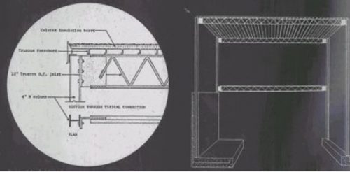 Demonstrating the potential of industrial technology in the manufacture of the materials and the adoption of the construction methods, the house was fully assembled with prefabricated elements, including steel, glass, asbestos and panels Cemesto remained a modular system.