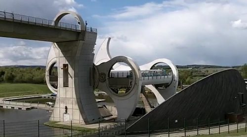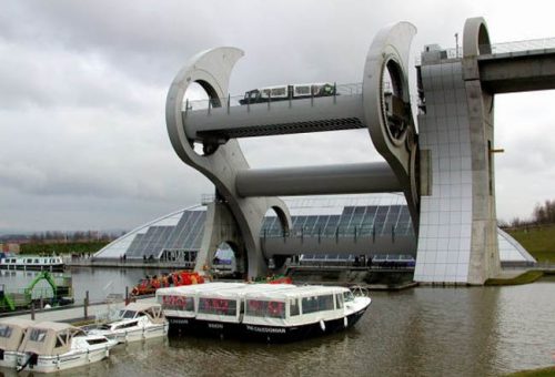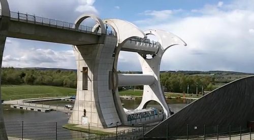 When was interrupted the old connection between the two Scottish channels to a smart solution to reconnect again resorted. Once linked to a series of locks, a giant rotating wheel to lift and down saving boats 24 meters difference between a channel and another was built.