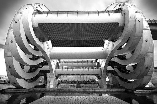For the only way its structure is said to have been inspired by various sources, both manmade and natural. Including a spear Celta dual head, turning a large propeller belonging to a ship built in the shipyards of Clyde, the ribs of a whale or the backbone of a great fish. The union of the channels, resembles a “backbone” bella resulting deep and repetitive way the aqueduct, whose arches add to the great structure, forming a complete circle with reflection thereof in the channel, extending the feeling tunnel.