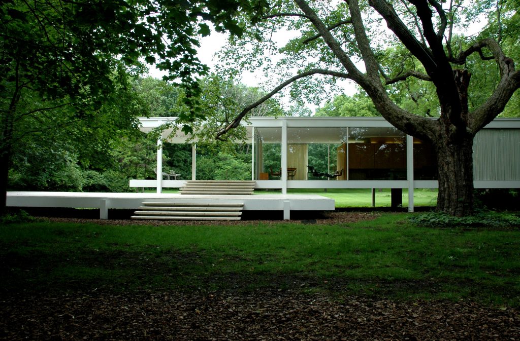 The Farnsworth House, an icon of the architecture of the Modernist movement, is found situated in a natural setting, very close to a river, with one of its sides facing toward a forest which separates it from the current of the water, and another facing a small meadow.