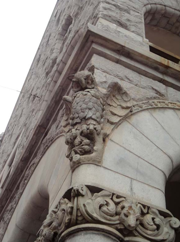 Richly decorated the building that resembles a castle has numerous architectural ornaments such as arched windows, columns or towers among others.