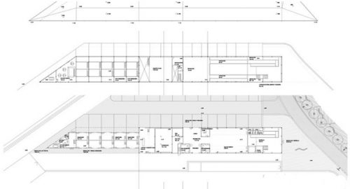 On the final, which traces the elevation of the breakwater, the port office, administrative space and port control. Between them, the offices of the guild and the new departments of shipowners, whose ground floor is setback from the perimeter to allow indoor workspaces.