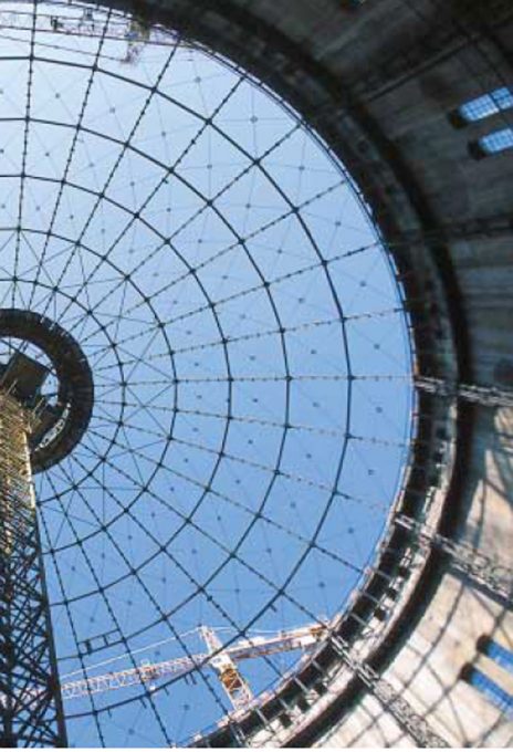 Concrete rings were added to consolidate the old work of the factory and to establish a connection between the reinforcement pillars of the Gasometer and the new building.