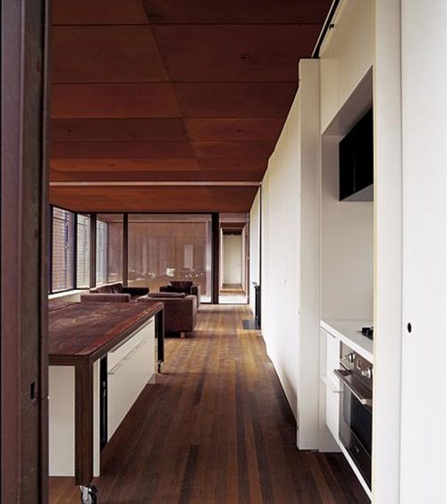 Residence is a simple way to view the distance and because of their rust-red color appear dramatic, but once traveled the winding road that leads to long ravine at the rear of the house, it has declined significantly, the surface is built 270 m2 and observer can not overlook its resemblance to the Peninsula House, also by Sean Godsell.