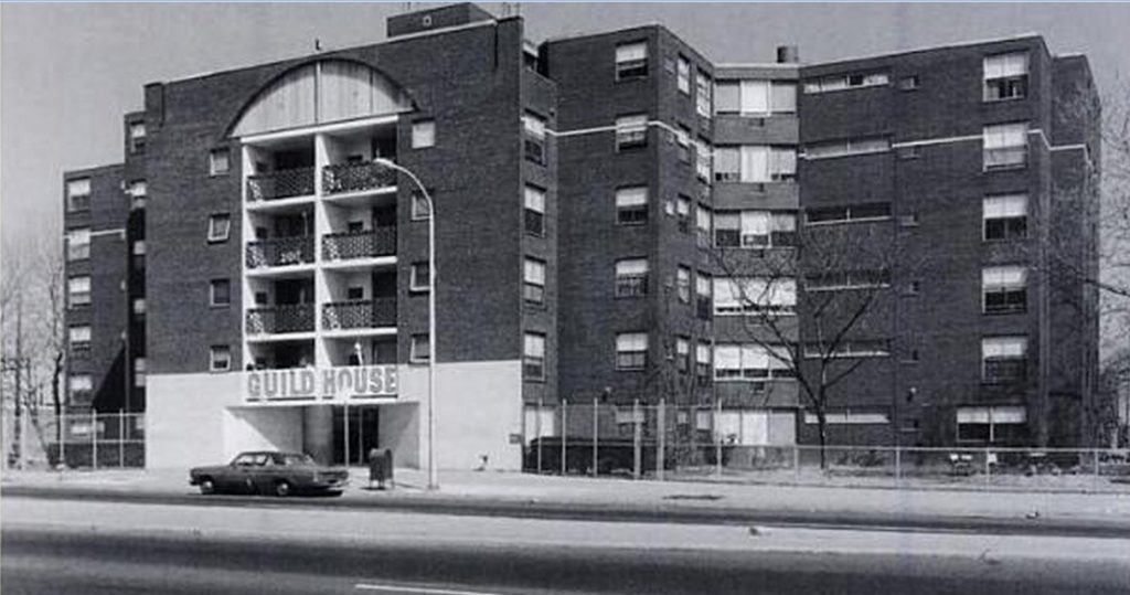 The building housing apartments for seniors with low incomes, was commissioned by Quaker organization and was completed in 1963. Together with the Vanna Venturi House is considered an important and influential works of twentieth-century architecture and one of the first expressions of postmodern architecture. Guild House represents a conscious rejection of modernist ideals and was widely cited in the further development of the postmodern movement.