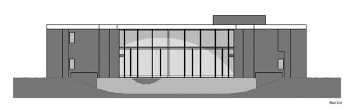 The coating has a semicircular shape and pronounced overhang to create a south that lets sunlight in winter and provides shade in summer, ie which takes fully into account the elliptical course of the sun.