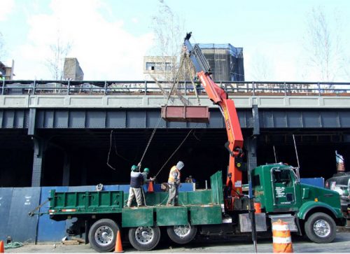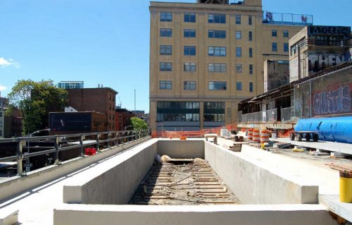 Before the new concrete structure could take shape, it was necessary to eliminate all elements of the former, since the steel rails, gravel, earth and debris and the first layer of old concrete. All that was needed to reach the steel structure of the High Line and make the necessary repairs.