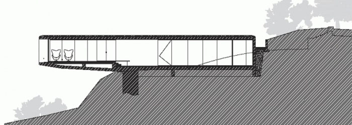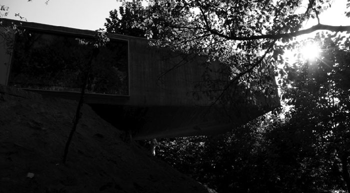 Meanwhile, a fundamental decision revealed the orientation of the house. His final deployment, perpendicular to the heights of level seeks a better relationship with the terrain and the platform where he sits, keeping intact the trees and surrounding areas. This slight intervention is exacerbated by the overhang on the cliff into the river, to maximize transparency and reduces the intervention on the ground.
