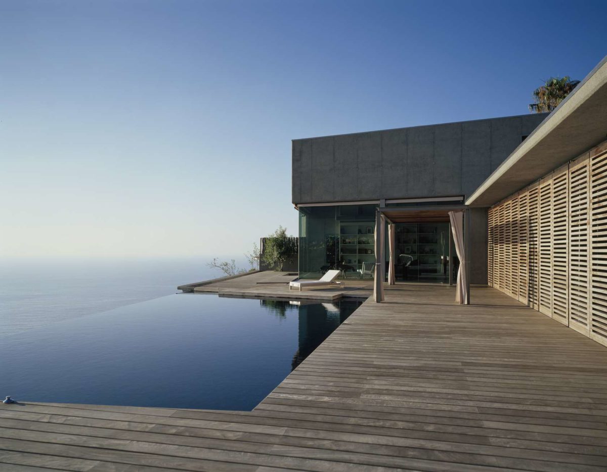 Described the two volumes are based on a wooden platform ipé surrounding a pool, black and located on the edge adjoining the cliff, so the water surface seems to melt into the sea. In this way the whole house has views of the sea and the coast highlighted by wood and water. This is intended to place part of the house, adding a companion to the landscape architecture.