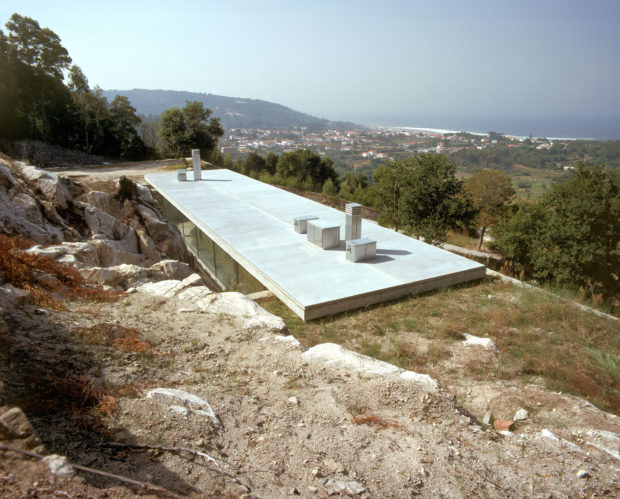 To Souto de Moura, site characteristics are more important than the customer’s requirements, especially where, as in Moledo, the program needs is a conventional list of rooms and the place is highly demanding: a vast expanse of a steep hillside overlooking the Atlantic coastline, terraced agricultural banks by an approximate height of 1.5 m, supported by the containment walls of stone.