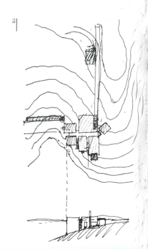 This also partially buried adheres to the main volume through a hall and consists of two floors. This volume is slightly rotated with respect to the principal and its windows open towards the east.