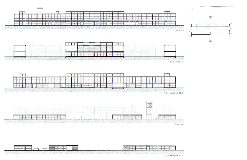The building boasts clear and defined edges and a closed symmetry in the composition of its main façades. It shows a formalist planimetry ordered by axes of symmetry. Notably, the Hunstanton school has a biaxial symmetry that is easily perceived from the outside.