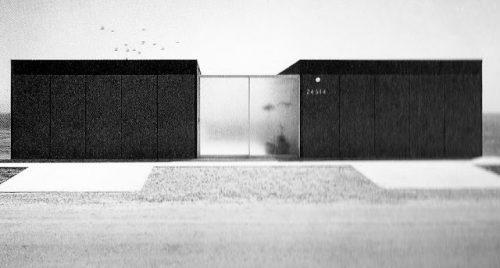This weekend house, with its distinctive front with two driveways on either side of the entrance to the house, was designed by Craig Ellwood, in association with Jerrold E. Lomax, for Dr. Hunt and his wife Elizabeth and published in the December 1958 edition of the magazine Art & Architecture, although not part of selecting the Case Study Houses, although its style is closely linked to the project promoted by the magazine.