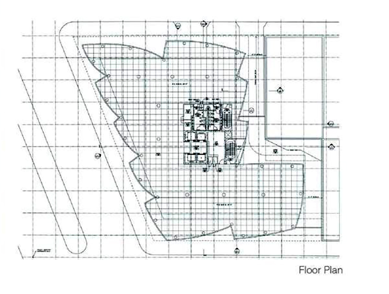 The curves and forms free project necessitated a more malleable than steel material to create the support of the building. What emerged was an intricate system of slabs and columns of reinforced concrete structure. A guided laser surveying equipment helped engineers and builders to find the exact position of each structural component.