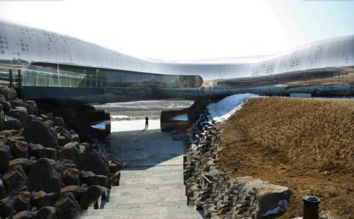 “We wanted to honor the river landscape that saw the birth of the first inhabitants of Korea, and recognize the beauty of the two curvy hills that form in the bend of the river. How these preexisting forms and geological chasm that exist within it are emphasized?
