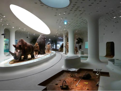 The Museum of Preshistoria avoids the traditional museology, spaces were designed for visitors to interact and explore the exhibits scattered throughout the interior space, either on the islands or wells posed on the ground or in the niches of the walls.