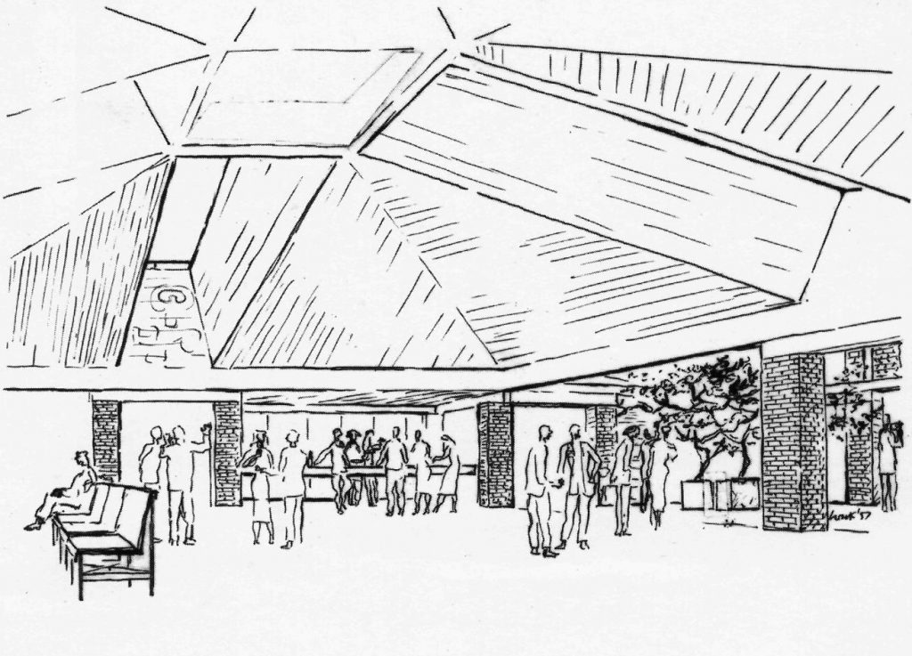 The building committee chairman, H. Saaz Harvey, who was an alumnus of Yale and knew the recent success of Kahn with the extension of the Calería Art at Yale University, hired Kahn. Over time, however, Saaz became the sole supporter of the vision of Kahn.