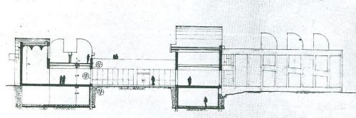 It is made of reinforced concrete. The floors are made with small barrel vaults and domes edges of these rails are recessed outlets. The upper rooms have a half barrel vault to allow light to reach the highest points.