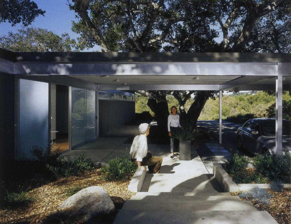 The plot the Johnsons had purchased in La Ranchería was oriented to the south, populated with oaks, and sloping from the street, offering views of distant rolling hills. To some extent, it was a plot comparable to the Case Study House No. 22, and Koenig approached the project similarly.