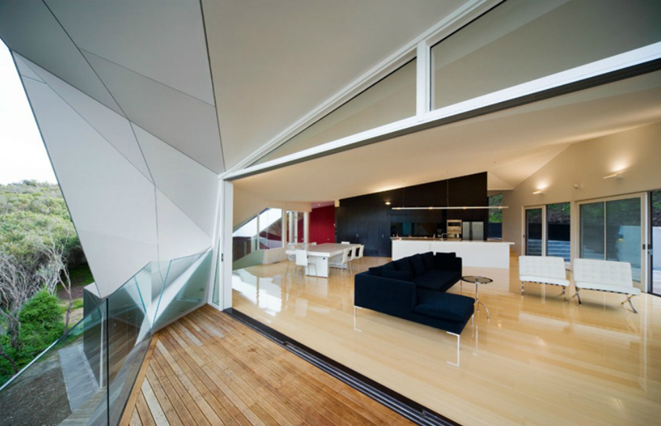 The house is located on the south coast, within the T-Tree (Tea Tree) zone, adjacent sand dunes to the ocean beach in Rye, Mornington Peninsula, an hour and a half drive from Melbourne, Australia.