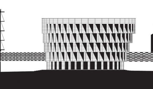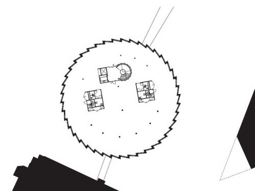 Circular in plan, the skewed shape is influenced by the jagged edge of a leaf, with a three-dimensional displacement in treating facade. It could also be associated with a toothed disc cutter circular machine.