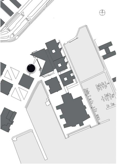 The distinctive cylindrical shape of the building and its location in the center of the square remind an urban planning with roots in the Italian Renaissance. In this case also serves to make it easier to use a place often windswept and temperatures.