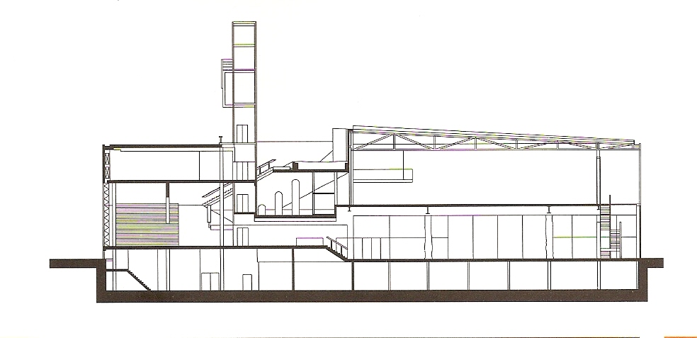 The building, inscribed in a square, is cut by ramps which define a continuous circle pedestrian and divide functional areas: auditorium, restaurant and offices, on the one hand, and rooms for exhibitions on the other. However, the set is permanently subjected to the presence or absence and the approach and the distance to other premises.