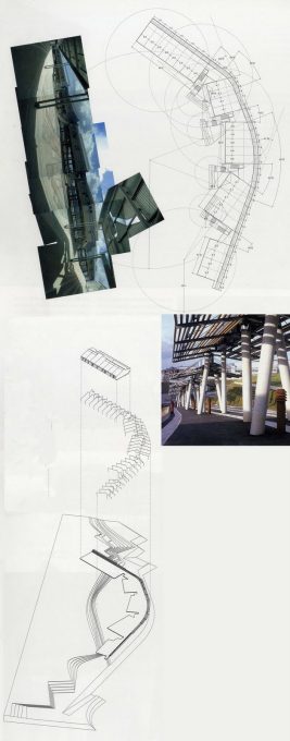 The system incorporates two orders lower portico of support differ substantially. In the outer band, a set of studs in the form of inverted V, subjected to a rigorous geometric order of design and distribution. By contrast, in the band generated a messy interior forest of pillars, a small section and provisions oblique, which gives the building a certain image of provisional.
