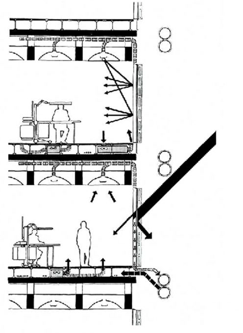 The triple-glazed outer skin of the coating acts as a tube of air from the ceiling to the floor.