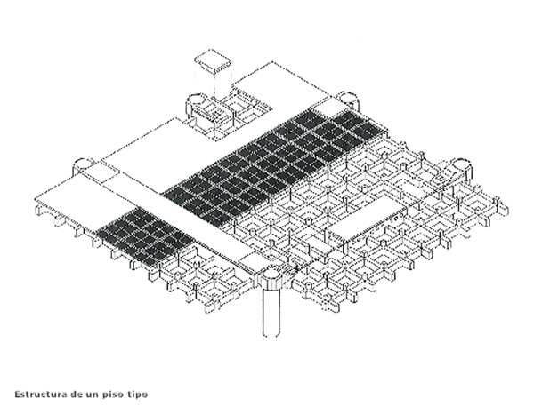 This concept implies that all spaces and service elements, such as elevators, stairs, bathrooms, cellars and machinery rooms are grouped into service towers located outside the mass of the building.