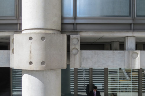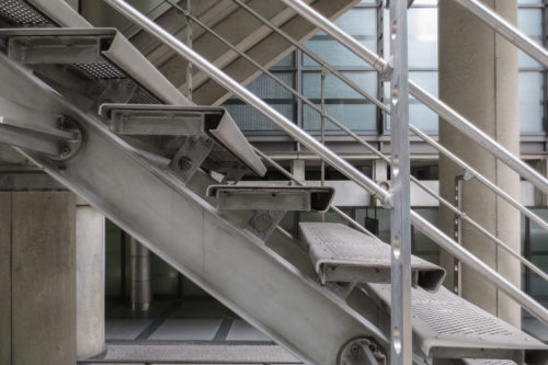 The unusual configuration is a result of its location within the irregular pattern of medieval streets and philosophy of the architect in that the building should appear to be mounted on a “kit of parts.” All the structural details are fully on display, giving the viewer a little understanding of how to support the building.