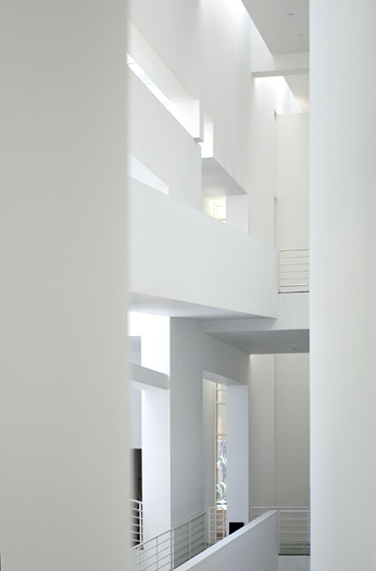 The architecture of Richard Meier is based on a clear rationalism, with citations to teachers of the modern movement and particularly Le Corbusier, which combines straight lines with curved lines to establish a dialogue between the indoor and outdoor light that enters the building through skylights and large galleries.
