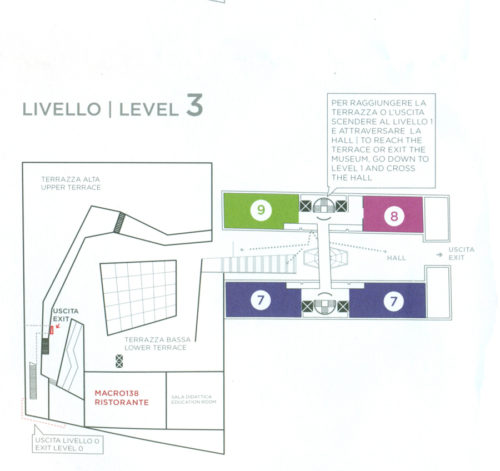 Next to the video room a staircase leads to the spacious lobby with glass ceiling whose sides are the two parallel blocks that house the rest of the museum and has Street exit Reggio Emilia. This courtyard is also sometimes used to display and communicates with the side buildings by bridges.