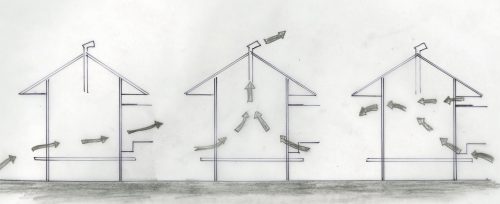 The surfaces of the vertical walls in the interior of the house, there are always upward. These walls are cut a little before reaching the ceiling, which allows heat in closed spaces, is raised above the roof along each environment and exit more quickly.