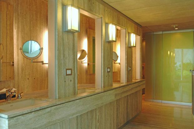 To extend the business traveler’s stay at the weekend, joined spa, gym, swimming pools and recreational and landscaped areas. That was achieved on the roof of the body under the building and is comprised of a large garden of 3,000 m2, overlooking the Alameda, where they were located, a cafeteria, a swimming pool – which also functions as a source – a clue paddle, and a space to exhibit art.