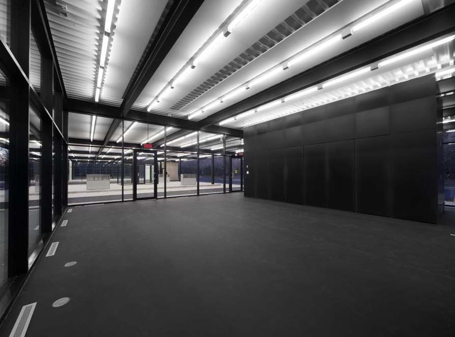 The new rooms have been named “White Room” and “Black Room”, according to the color of soil. The original office manager in the middle of the middle and glass-enclosed island, has been restored as a showcase where some sketches of Mies and the building’s history are exhibited. In the place occupied by the old fuel dispensers they are located outputs of ventilation shafts.
